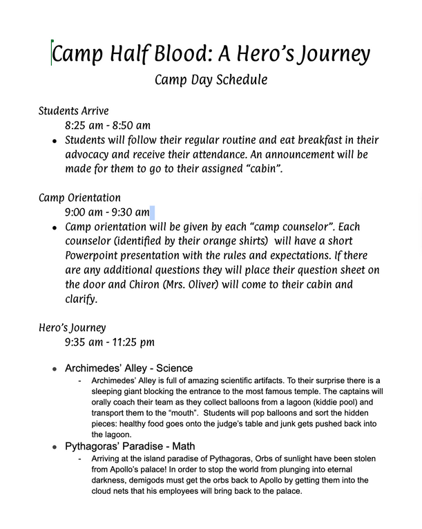 An excerpt from the planning file my coworker and I made in order to create a field day for students.